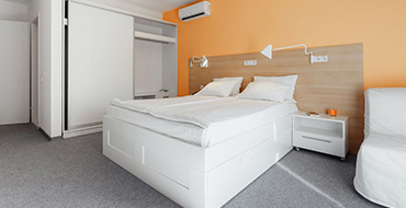 Уютный номер площадью от 21 м2, оборудованный современной эргономичной мебелью, вместительным шкафом.