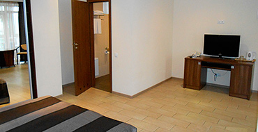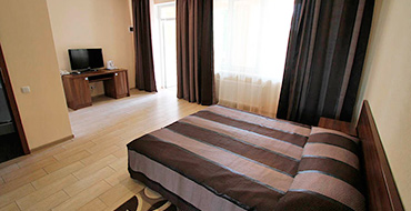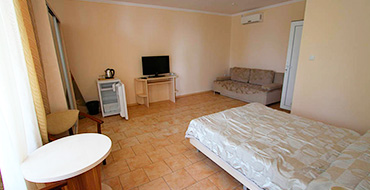 В номере: двуспальная кровать, диван, шкаф, стол, холодильник, телевизор (75 каналов), душ, туалет, умывальник, кондиционер. Площадь номера — 25 кв.м. Возможно размещение до 4 человек, доп. место - диван. При размещении 3-х, 4-х человек доп. место оплачивается отдыхающими любого возраста. Номера категории "улучшенный+" расположены на 3 -м этаже и имеют широкую террасу-балкон с видом на море.