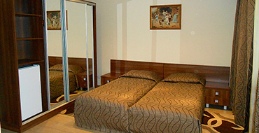 В номере: раздельные кровати, шкаф, стол, холодильник, телевизор (75 каналов), душ, туалет, умывальник. Площадь номера— 11 кв.м. Доп. место - не предусмотрено. В номерах "стандарт+" - дополнительно кондиционер.
