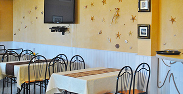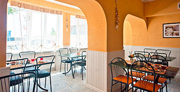 На территории комплекса работает бар-буфет, летнее кафе-бар. Каждый вечер для туристов в летнем баре будет предложен ресторанный вариант – широкий выбор блюд: шашлыки, мясо и рыба на мангале, картошка фри, баварские сосиски, украинские вареники и пельмени и т.д.