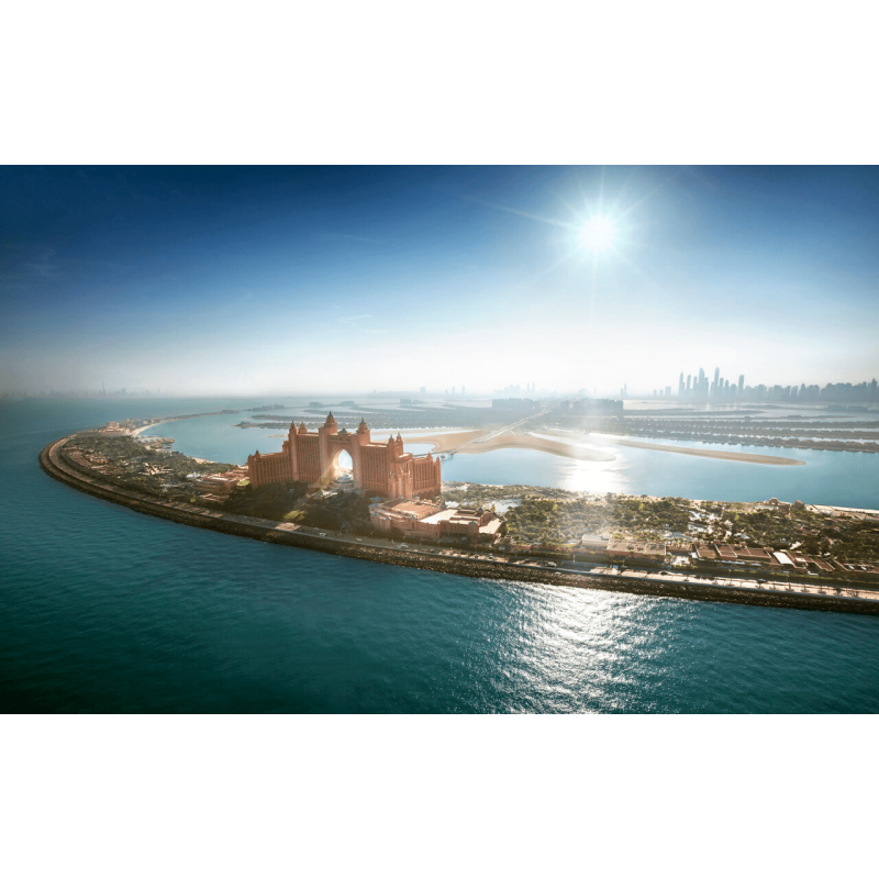 Находится на самой вершине полумесяца Пальмового острова Джумейра, окруженный тихими водами Персидского залива.