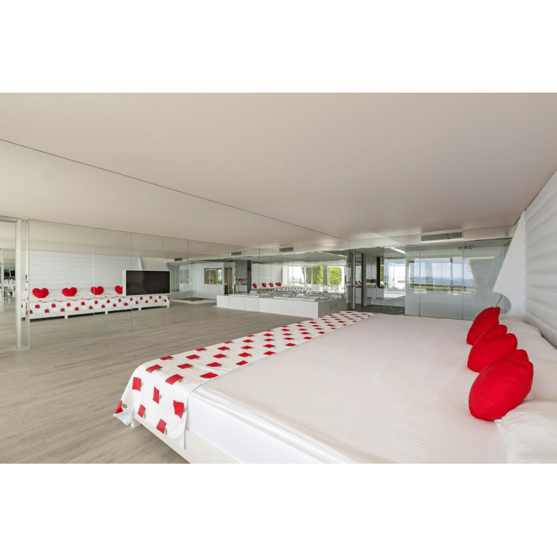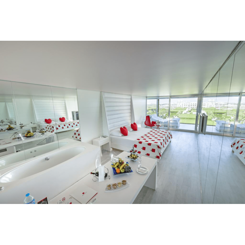 Отель предлагает размещение в design rooms, ladies design rooms, комнатах для молодоженов — honeymooner design rooms, нмоерах для пар — romantic couples design rooms, сьютах и виллах. Во всех номерах установлены джакузи, виллы располагают гардеробными и террасами с личными бассейнами.